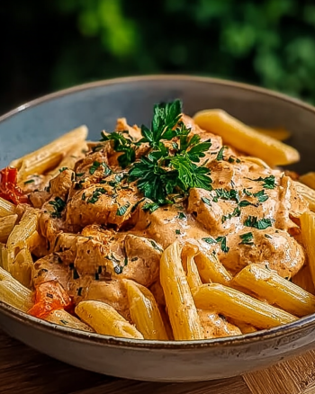 Cremige Nudeln mit Hähnchen und Paprika einfach zubereiten.