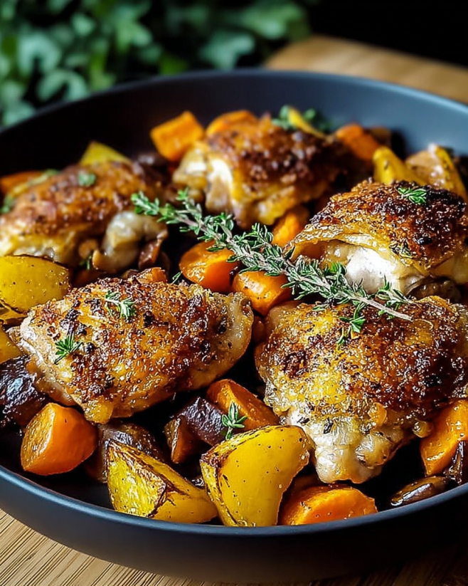 Knusprige Hähnchenschenkel mit Ofengemüse einfach genießen!